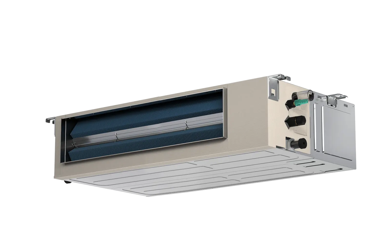 Το χαμηλό ύψος της εσωτερικής μονάδας μόλις 200 mm επιτρέπει εύκολη εγκατάσταση ακόμη και σε ψευδοροφές περιορισμένου χώρου. Παράλληλα, η μονάδα λειτουργεί αξιόπιστα σε μεγάλο εύρος θερμοκρασιών περιβάλλοντος, από -15°C έως +53°C στην ψύξη και από -20°C έως +31°C στη θέρμανση, προσφέροντας σταθερή απόδοση σε διαφορετικές κλιματικές συνθήκες.