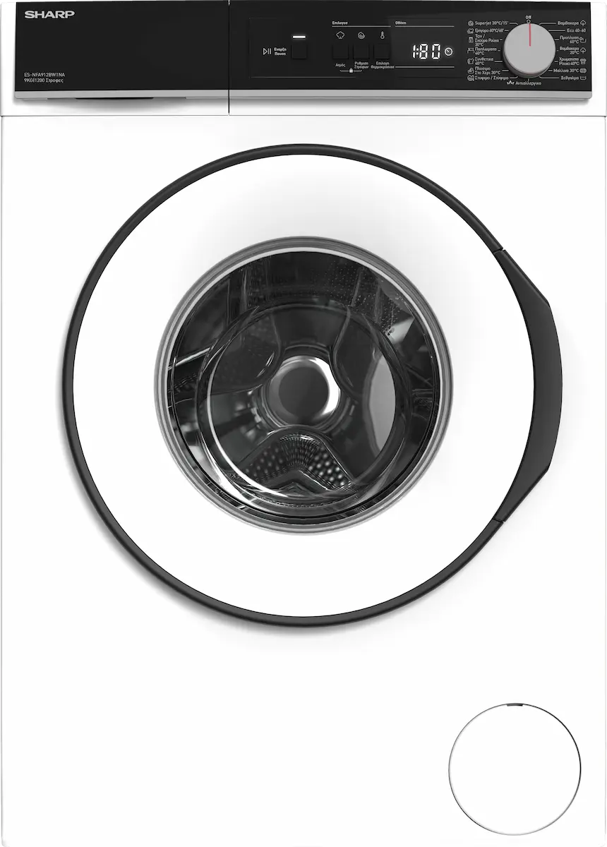 - Πλυντήριο Ρούχων SHARP ES-NFA912BW1NA-GR 9kg – Κλάση Α, Ατμός, 1200 Στροφές